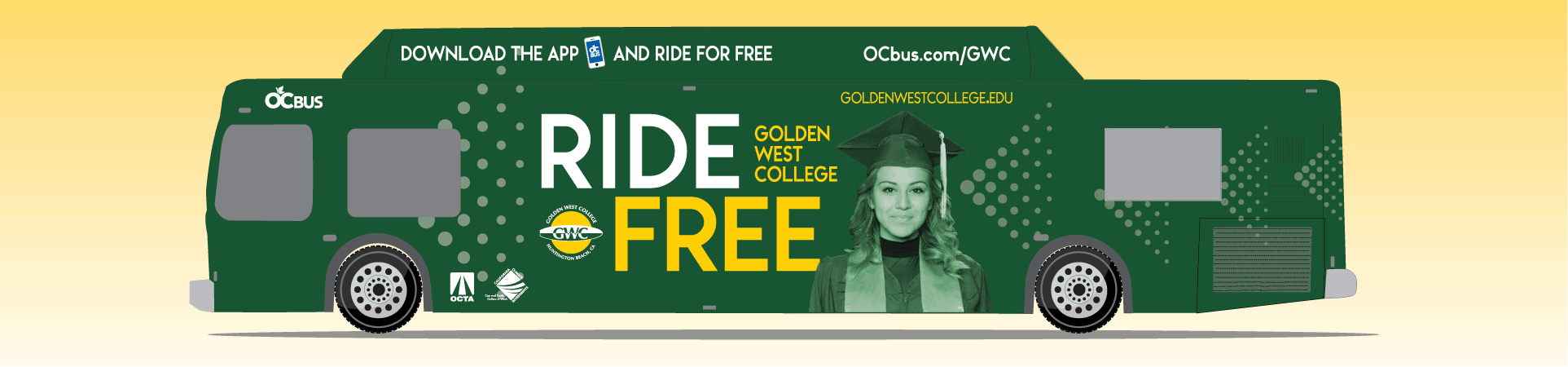 The OCTA Community College Pass Program provides students at Golden West College with free travel on the OC Bus service to school, work or fun on safe, clean and reliable buses. Ride to school, work, shopping, and the beach for FREE! Orange County is packed with great destinations easily reached by OC Bus. Use your pass to explore!