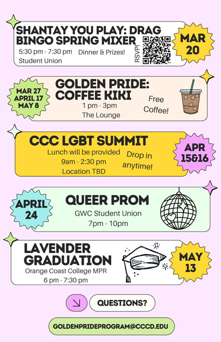 A group of like-minded students who want to succeed in higher education. Students will study, socialize, and gain resources together. Students in the collective may either identify as LGBTQIA2S+ or consider themselves strong allies; however, the study collective is open to all students. Requirements; Students in the collective must attend weekly study sessions and attend monthly community-building hangouts Benefits; Community, Building study skills, LGBTQ+ Academic Counseling, Personalized one-on-one mentorship with LGBTQ+ Faculty Coordinator- Jeanette Adame (They/She), Access to Zero-cost textbook courses, Free snacks, and so much more! Interested?